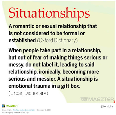 You are absolutely right, Tom. Even I cannot imagine any intimacy without any commitment in the relationship or situationship or whatever. I guess we have become too old to understand the kind of things the younger generations come up with. On the other hand maybe the younger generations are too young to understand the value of a relationship with true commitment.